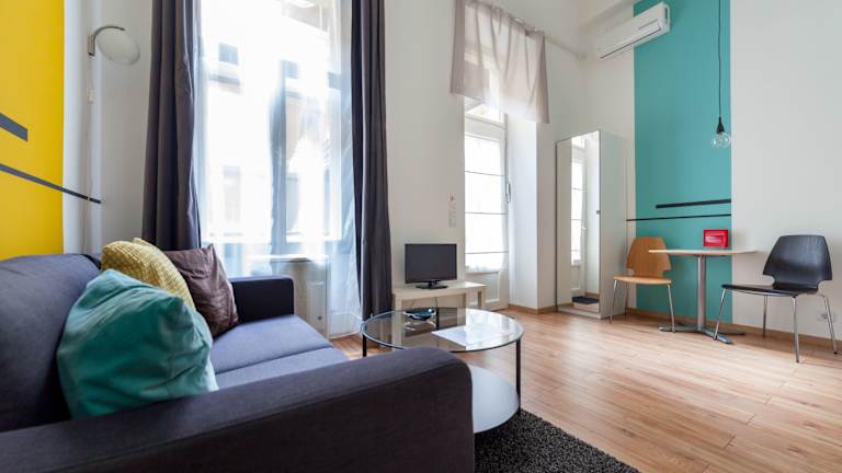 Die Tatra 4 Studios befinden sich im Herzen von Budapest, nur 600 m vom Bahnhof Nyugati entfernt. Diese zentrale Lage ermöglicht es Ihnen, die Stadt bequem zu erkunden und alle wichtigen Sehenswürdigkeiten und Attraktionen leicht zu erreichen. Die Studios liegen nur 5 Gehminuten vom Ufer der Donau und der Margareteninsel entfernt und bieten Ihnen somit die Möglichkeit, die Schönheit des Flusses und der umliegenden Natur zu genießen. Die berühmte Kettenbrücke ist ebenfalls nur 2 km entfernt und kann bequem zu Fuß erreicht werden.