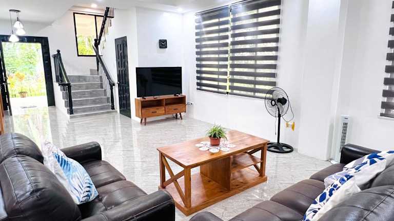 Das Grande- Entire Ground Level in Tangaro auf Mindanao ist eine ideale Unterkunft für einen erholsamen Urlaub. Mit einem Balkon und Gartenblick können Sie die Natur genießen und auf der Terrasse entspannen. Das Ferienhaus bietet kostenfreie Privatparkplätze und WLAN. Mit zwei Schlafzimmern und einem Wohnzimmer mit Flachbild-TV bietet es ausreichend Platz für eine Familie oder eine Gruppe von Freunden. Die Unterkunft verfügt auch über eine voll ausgestattete Küche, in der Sie Ihre eigenen Mahlzeiten zubereiten können. Der nächste Flughafen ist der Flughafen Camiguin, der etwa 26 km entfernt liegt.