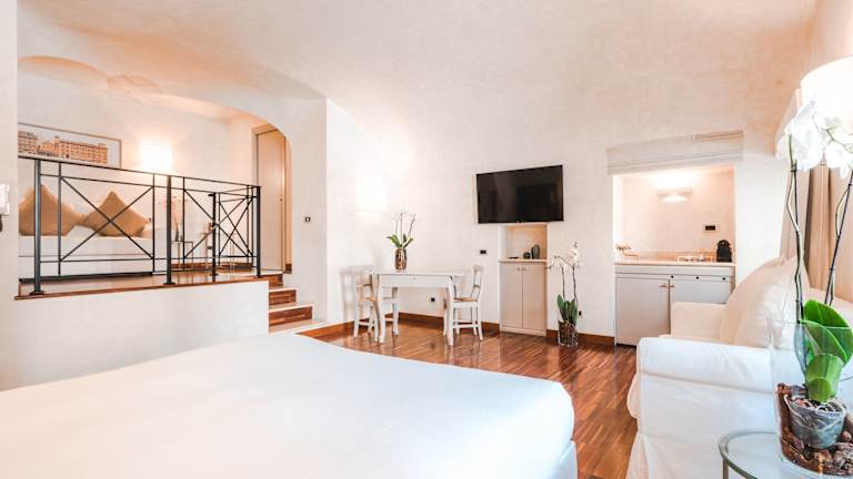 Die Suiten sind sehr geräumig, stilvoll eingerichtet und verfügen über einen eigenen Eingang. Sie sind mit einem Flachbild-TV, Klimaanlage, Parkettböden und einem Essbereich ausgestattet.