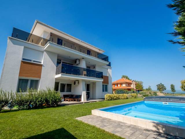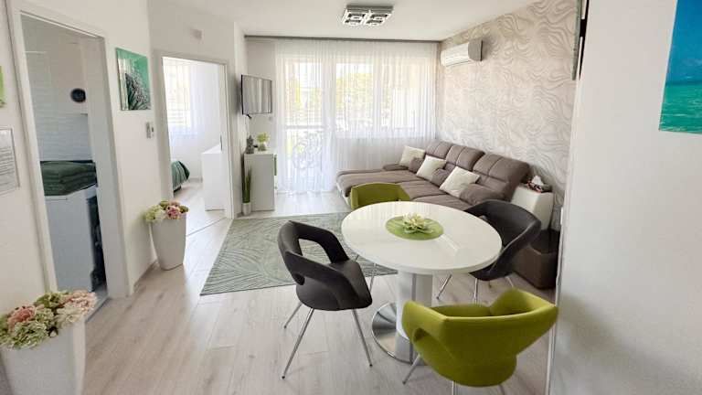 Das TemOro Apartman Green bietet eine Ferienwohnung mit Blick auf den Pool, einem saisonalen Außenpool und einer Terrasse. Zu den Annehmlichkeiten zählen kostenlose Fahrräder, ein eigener Garten und Grillmöglichkeiten sowie ein kostenloser Privatparkplatz und kostenfreies WLAN. Die Unterkunft ist klimatisiert und geeignet für Familien.