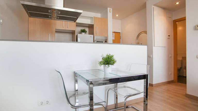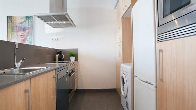 Die Apartments verfügen über eine voll ausgestattete Küche mit Kühlschrank, Geschirrspüler, Ofen, Mikrowelle, Herdplatte, Toaster, Kaffeemaschine und Wasserkocher, wodurch die Möglichkeit besteht, eigene Mahlzeiten zuzubereiten.