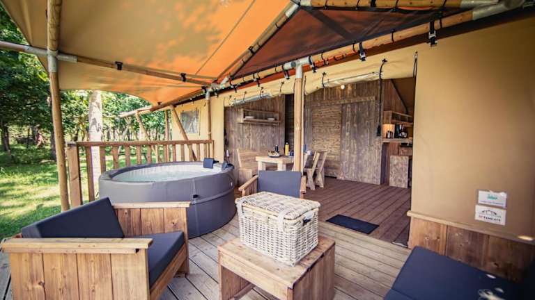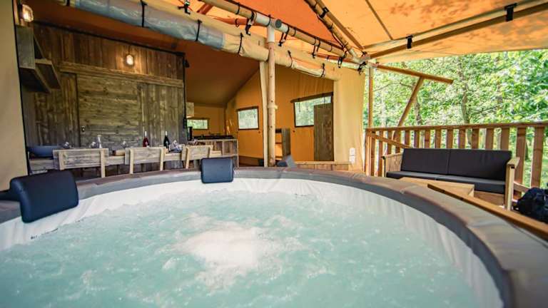 Die Tente lodge Jacuzzi privatif en pleine nature bietet den Gästen die Möglichkeit, in einem ruhigen Ambiente zu verweilen. Die Unterkunft verfügt über einen Whirlpool und bietet complimentary Privatparkplätze.