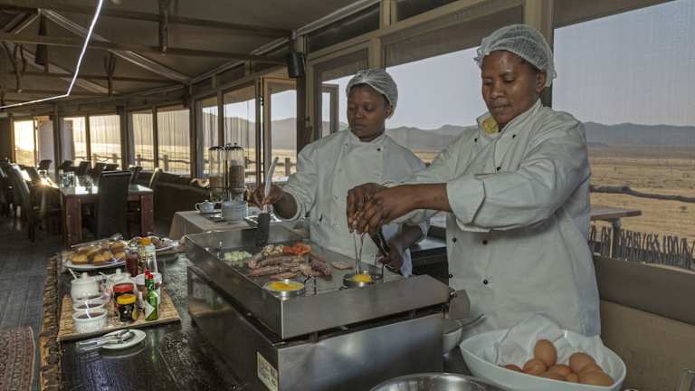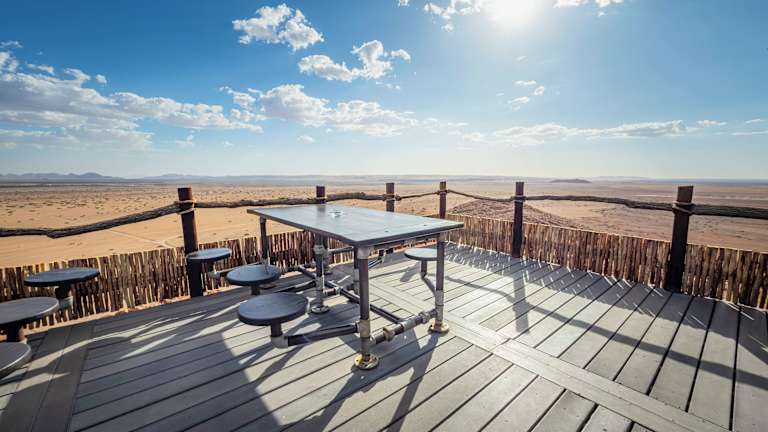 Die Tented Moon Mountain Lodge befindet sich im Namib Naukluft Park, etwa 56 km von Sesriem entfernt. Die Lodge liegt in der Nähe der roten Sanddünen von Sossusvlei und ist in der Umgebung der Moon Mountains eingebettet. Die ruhige Lage ermöglicht die Erkundung der einzigartigen Tierwelt dieser Wüstenregion. Solitaire liegt ca. 30 km in südlicher Richtung, und der Flughafen Hosea Kutako International Airport befindet sich etwa 323 km entfernt.