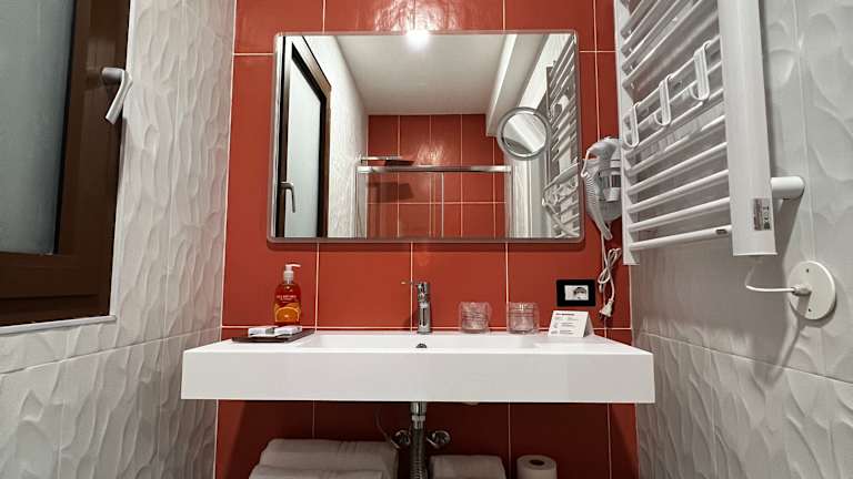 Die Zimmer verfügen über ein voll ausgestattetes eigenes Badezimmer mit Dusche und Haartrockner.