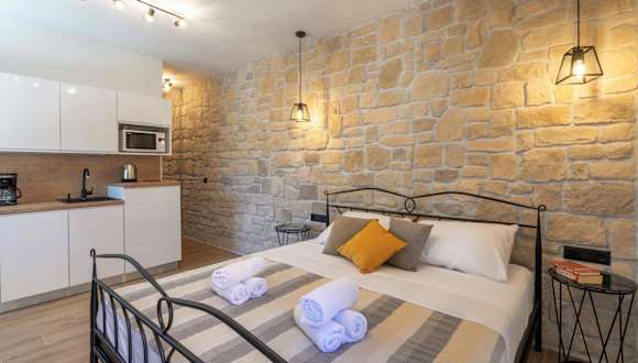 Das TEONA Luxury Studio Apartment befindet sich in Sali, nur 300 m vom Strand entfernt. Die Lage bietet Ihnen die perfekte Mischung aus Strandnähe und Ruhe im Grünen. In der Umgebung können Sie wunderschöne Radtouren unternehmen und die Landschaft erkunden. Der nächstgelegene Flughafen Zadar ist etwa 66 km entfernt.