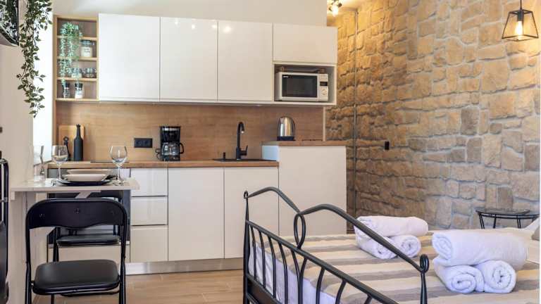 Das Studio Apartment ist luxuriös und modern eingerichtet und bietet Ihnen allen Komfort, den Sie für einen angenehmen Aufenthalt benötigen. Die klimatisierte Unterkunft verfügt über einen Flachbild-Sat-TV und kostenfreies WLAN. Die Küche ist komplett ausgestattet mit einem Kühlschrank, einem Geschirrspüler und einem Backofen. Im Badezimmer finden Sie eine Dusche mit kostenfreien Pflegeprodukten und einem Haartrockner. Highlight des Apartments ist der Whirlpool, in dem Sie sich entspannen und den Urlaub genießen können.