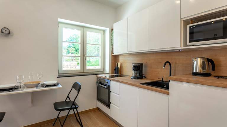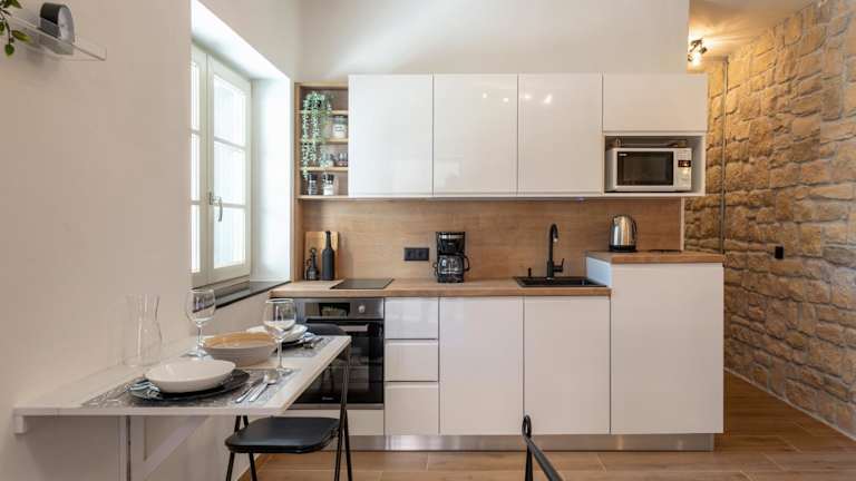 In der Küche des Apartments können Sie Ihre eigenen Mahlzeiten zubereiten und den Essbereich nutzen. Alternativ können Sie auch die Restaurants in der Umgebung erkunden und lokale Spezialitäten genießen.