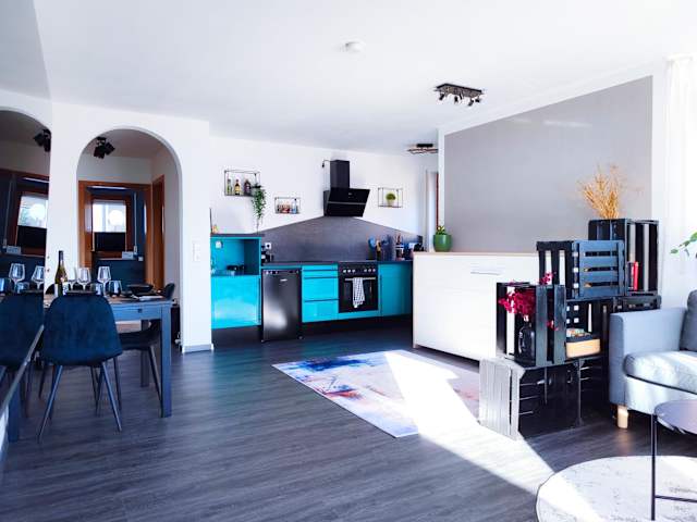 Die Ferienwohnung bietet ein Schlafzimmer, ein Wohnzimmer mit einem Flachbild-TV, eine gut ausgestattete Küche mit Kühlschrank und Geschirrspüler sowie ein Badezimmer mit Dusche. Handtücher und Bettwäsche werden bereitgestellt.