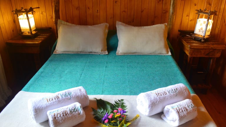 Verbringen Sie einen entspannten Urlaub in der Terra Lodge in Puerto Iguazú. Umgeben von einem schönen Garten bietet das Hotel einen Außenpool und komfortable Unterkünfte mit kostenfreiem WLAN. Die holzverkleideten Bungalows sind gemütlich eingerichtet und verfügen über eine voll ausgestattete Küche. Entspannen Sie auf der Sonnenterrasse oder lesen Sie ein Buch aus der hoteleigenen Bibliothek. Parkmöglichkeiten stehen Ihnen kostenlos zur Verfügung. Das Casino Iguazu und das Einkaufszentrum Shopping Mall sind nur eine kurze Autofahrt entfernt. Der Flughafen Cataratas del Iguazu ist ebenfalls leicht zu erreichen.