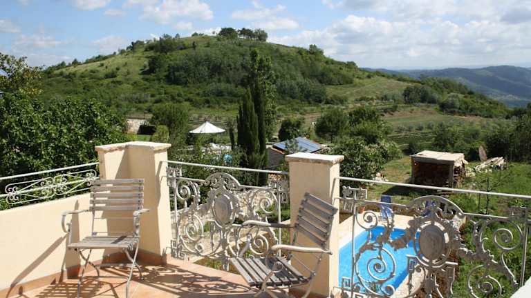 Terra Mirna - Urlaub für die Sinne bietet eine Unterkunft mit Stadtblick und umfasst zahlreiche Annehmlichkeiten, darunter einen saisonalen Außenpool, einen Garten, eine Terrasse sowie ein Restaurant mit Grillmöglichkeiten. WLAN und ein Privatparkplatz sind kostenfrei verfügbar. Die Unterkunft ist klimatisiert und verfügt über eine Reihe von Services, wie einen Kinderspielplatz und einen Minimarkt vor Ort. Die Mindestalter für den Check-in beträgt 18 Jahre, Haustiere sind willkommen.