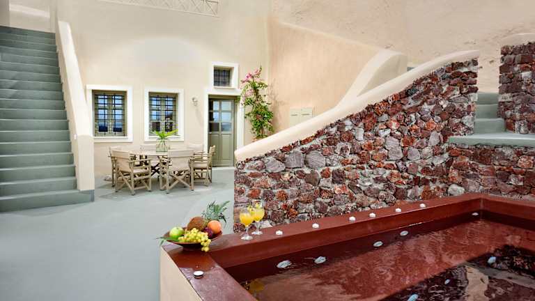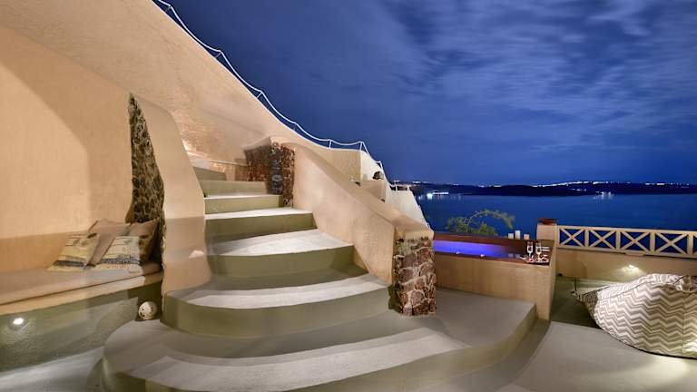 Das Hotel befindet sich im Bezirk Oia Caldera, 1,3 km von dem Strand Paralia Katharos entfernt. Die Sehenswürdigkeiten Archäologisches Museum Thera (14 km), Hafen Santorin (22 km), sowie die archäologische Stätte Akrotiri (26 km) sind in der Nähe. Das Naval Museum of Oia ist nur 300 m entfernt, und der Flughafen Santorin liegt 17 km von der Unterkunft entfernt.