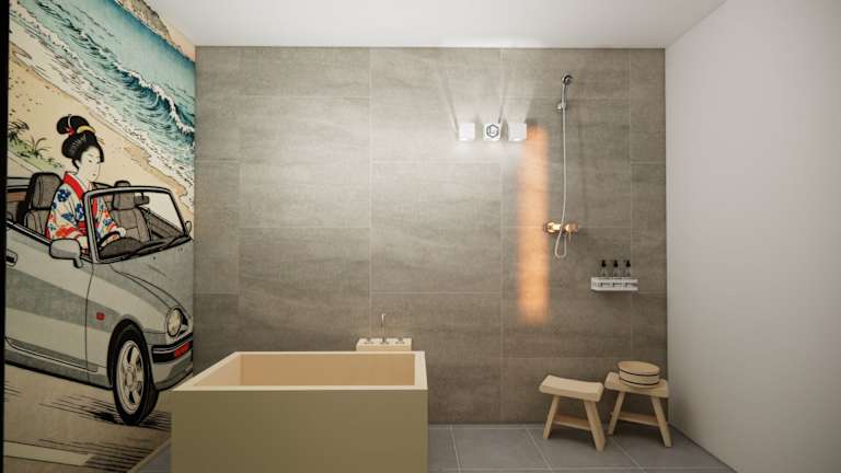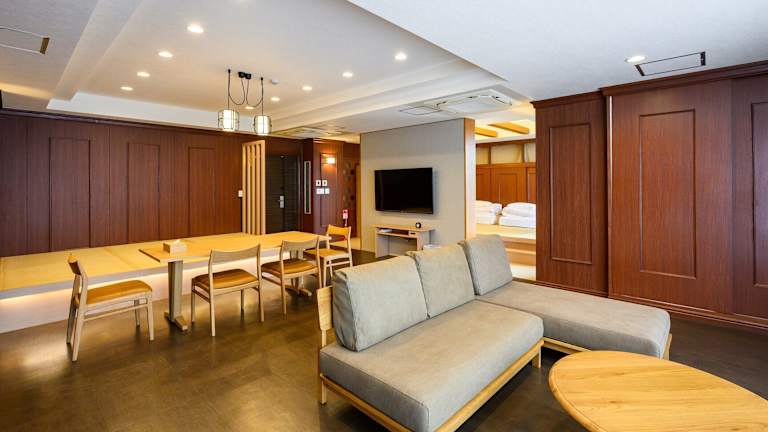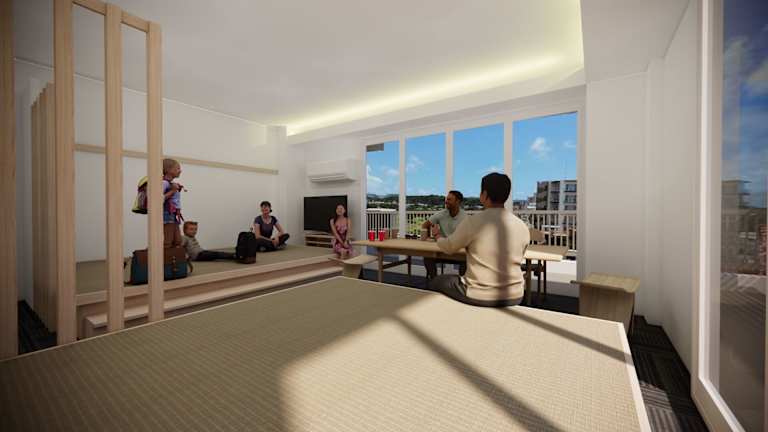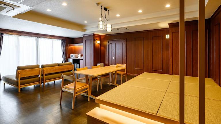 Die Zimmer im Terrace Garden Mihama Resort sind geräumig und bieten einen herrlichen Meerblick. Mit einer Größe von 100 m2 bieten sie viel Platz zum Entspannen und verfügen über einen komfortablen Sitzbereich mit Sofa. Zur Ausstattung gehören ein Flachbild-TV, ein Kühlschrank und ein Wasserkocher mit grünem Tee. Jedes Zimmer verfügt über einen Balkon und einen großen Relaxsessel. Das eigene Badezimmer ist mit einer Whirlpool-Badewanne und einer Dusche ausgestattet.