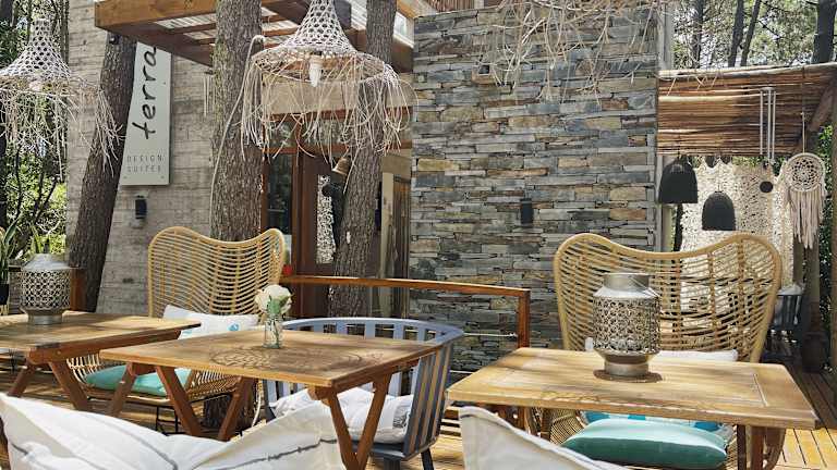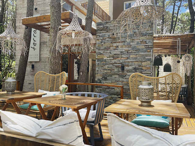 Das Hotel Terral Suites befindet sich in Mar de las Pampas, umgeben von einer grünen Gartenlandschaft.