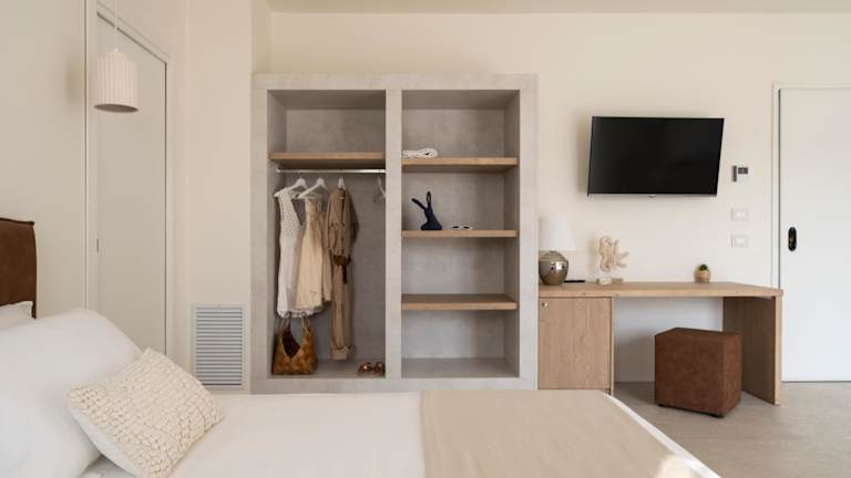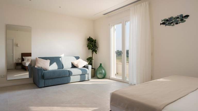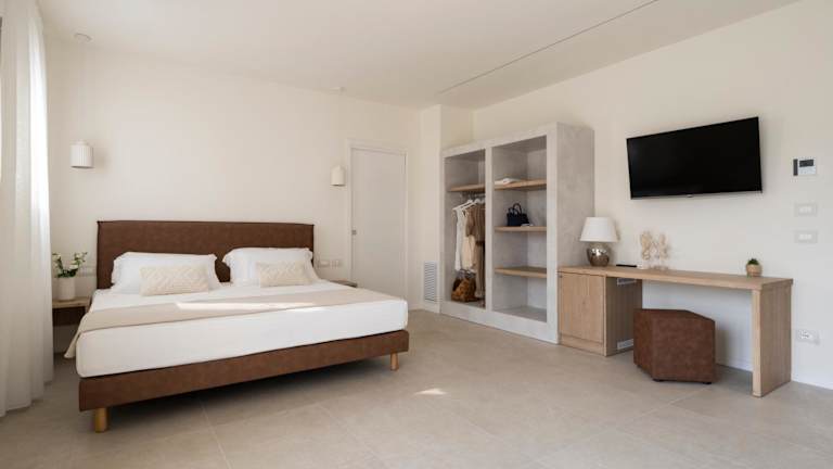 Jedes Zimmer im Terramarina Boutique Hotel ist mit einem Schreibtisch sowie einem eigenen Badezimmer mit Bidet und kostenlosen Pflegeprodukten ausgestattet. Zur Zimmerausstattung gehören zudem ein Flachbild-TV, Klimaanlage und ein Safe. Einige Zimmer verfügen über eine Terrasse, die zusätzlichen Komfort bietet.