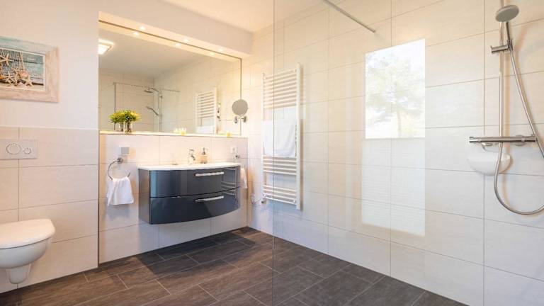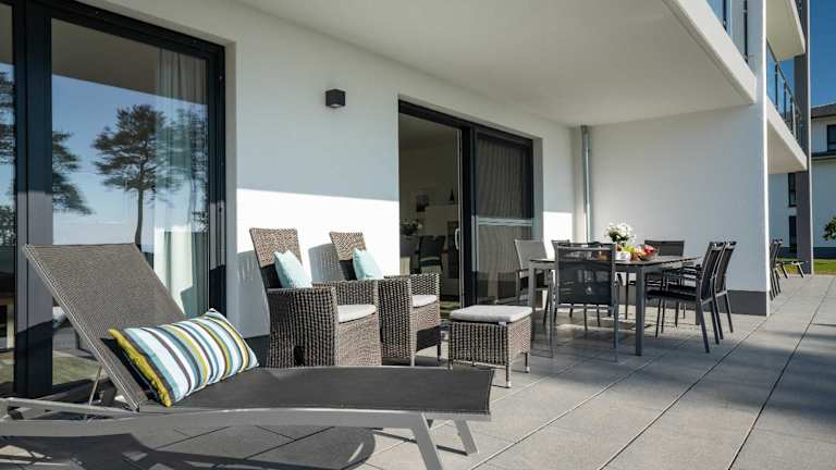 Die Unterkunft Terrassenwohnung "Usedom" - Oase am Haff bietet eine ansprechende Ferienwohnung mit Blick auf das Meer und einer großen Terrasse. Kostenfreies WLAN und Grillmöglichkeiten sind ebenfalls vorhanden. Zur Ausstattung gehören zudem Tischtennis, Dart und ein kostenloser Privatparkplatz. Ein Wellness-Bereich mit Fitnessraum und Sauna ist ebenfalls verfügbar. Die Mindestalter für den Check-in beträgt 18 Jahre, und Haustiere sind auf Anfrage erlaubt. Die Unterkunft ist in Nichtraucherzonen unterteilt.