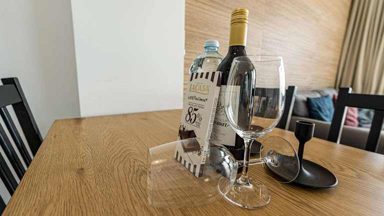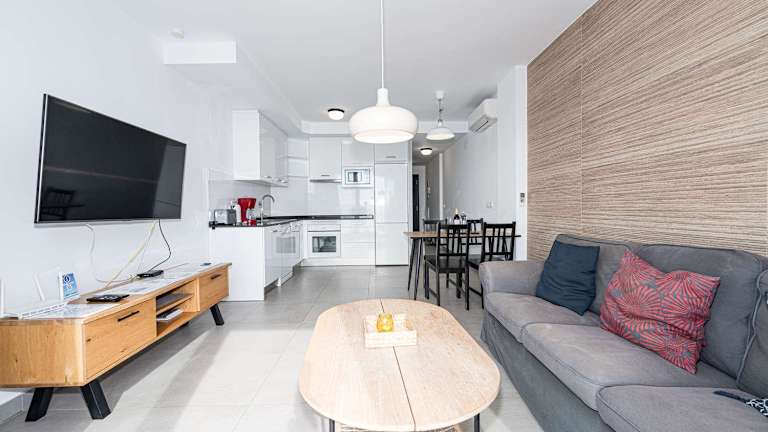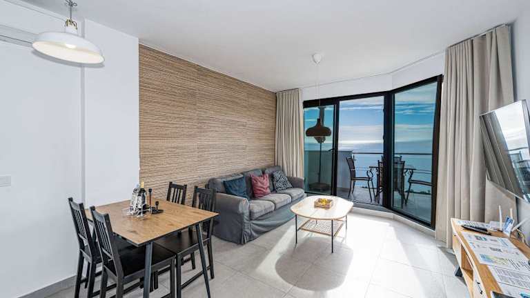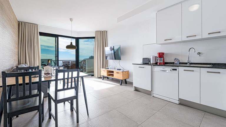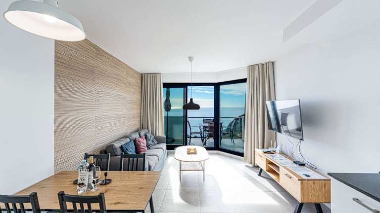 Die Ferienwohnung verfügt über zwei Schlafzimmer und zwei Badezimmer. Zur Ausstattung gehören Bettwäsche, Handtücher, ein Flachbild-TV, ein Essbereich sowie eine voll ausgestattete Küche. Ein Balkon mit Meerblick ist ebenfalls vorhanden.
