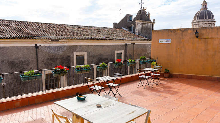 Das Terrazza Santa Chiara ist ein charmantes Bed & Breakfast im Herzen von Catania. Von der Terrasse aus genießen Sie einen herrlichen Blick auf die Stadt, während Sie sich in einer gemütlichen und familiären Atmosphäre entspannen. Das Hotel bietet komfortable Unterkünfte mit kostenfreiem WLAN und Annehmlichkeiten wie einen Flachbild-Kabel-TV. Starten Sie Ihren Tag mit einem köstlichen Frühstück und erkunden Sie die Stadt auf einem Fahrrad, das Sie direkt in der Unterkunft ausleihen können. Die zentrale Lage ermöglicht es Ihnen, die Piazza Duomo und das Castello Ursino bequem zu Fuß zu erreichen.