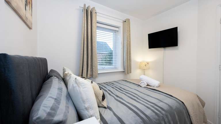 Das Ferienhaus verfügt über ein Wohnzimmer mit Flachbild-TV, eine voll ausgestattete Küche mit Kühlschrank und Mikrowelle sowie zwei Badezimmer, die mit einer Badewanne ausgestattet sind.