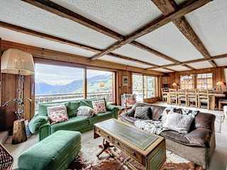 Das Teura Chalet bietet eine komfortable Unterkunft mit einem Balkon und einer Kaffeemaschine. Mit 6 Schlafzimmern, einem geräumigen Wohnzimmer und einer voll ausgestatteten Küche haben Sie ausreichend Platz, um sich wie zu Hause zu fühlen. Die Terrasse bietet einen atemberaubenden Blick auf die Berge und ist der perfekte Ort, um die Natur zu genießen. Handtücher und Bettwäsche sind im Chalet vorhanden, und es gibt auch eine Skiaufbewahrung für alle, die den Wintersport lieben.