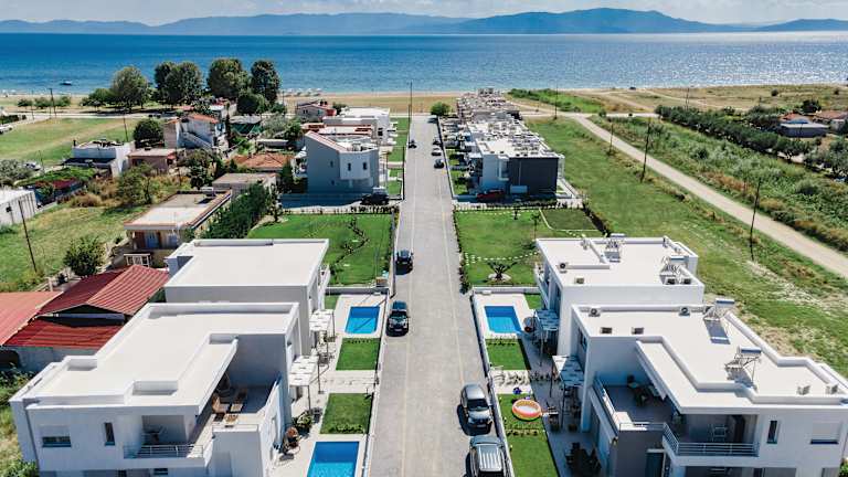 Ein exklusiver Komplex aus freistehenden Luxusapartments und Villen, der sich harmonisch in die natürliche Landschaft einfügt und die Umwelt respektiert. Nur wenige Schritte vom Strand Costa Ofrynio entfernt, mit Blick auf die Bucht von Orfanos und die Ägäis. Wählen Sie zwischen Apartments mit einem oder zwei Schlafzimmern und Zugang zu einem wunderschön angelegten Garten oder einem großen Balkon mit Meerblick. Gönnen Sie sich und Ihren Liebsten eine Auszeit: Unsere Villen mit privatem Pool und/oder Garten sind nur einen Klick entfernt. Parkplätze und Parkmöglichkeiten sorgen für einen entspannten Aufenthalt am Strand Costa Ofrynio. Die Residenzen sind 365 Tage im Jahr verfügbar. Wohnanlage THALASSA PRIVÉ Ein besonderes Highlight der Thalassa Residences! Ein völlig neues Konzept luxuriöser Villen, die durch ein privates Tor zu einem begrünten Platz mit Bäumen und viel Grün führen. Sobald Sie geparkt haben, werden Sie von diesen beeindruckenden Villen mit privatem Pool begeistert sein. Eine Mischung aus Stein und Marmor wird Ihnen den Atem rauben, bevor Sie das Innere betreten, wo Sie abends im Wohnzimmer entspannen und die Wasserspiegelung an der Decke genießen können, die durch eine große Glaswand mit direktem Blick auf den Pool hindurchscheint!