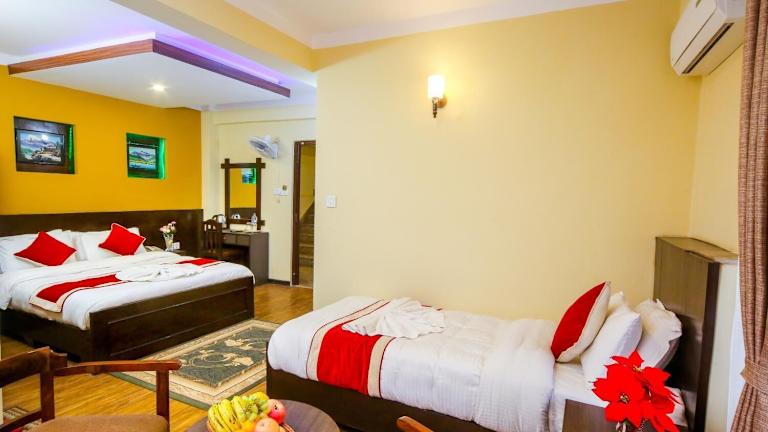 Das Thamel Home ist eine haustierfreundliche Unterkunft in Thamel, nur 2,5 km von Kathmandu entfernt. Hier erwartet Sie kostenfreies WLAN, ein Restaurant, ein Wellnesscenter und eine Sauna. Genießen Sie eine Mahlzeit im Restaurant oder entspannen Sie sich bei einem Getränk an der Bar. Die Zimmer sind komfortabel eingerichtet und bieten einen TV sowie ein eigenes Badezimmer mit kostenfreien Pflegeprodukten. Einige Zimmer bieten zudem einen herrlichen Blick auf die Berge oder den Garten. Die Unterkunft bietet auch einen kostenlosen Shuttleservice.