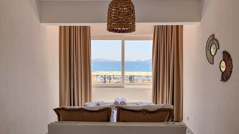 Die Gästezimmer im Thanos Hotel sind mit einem Flachbild-TV, kostenlosem WLAN sowie einem eigenen Badezimmer mit Dusche und kostenlosen Pflegeprodukten ausgestattet. Einige Zimmer bieten Meerblick. Zur Ausstattung zählen außerdem Bettwäsche, Handtücher und Klimaanlage.