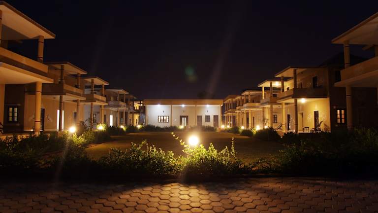 Das Clarks Exotica Resort & Camp liegt in Shergarh, in der Nähe von Phalodi - Dechu Road. Die Umgebung bietet eine ruhige und natürliche Umgebung, ideal zum Entspannen und Erholen. In der Nähe befinden sich verschiedene Tempel und das Khichan Bird Sanctuary, ein Vogelschutzgebiet, das einen Besuch wert ist.