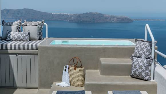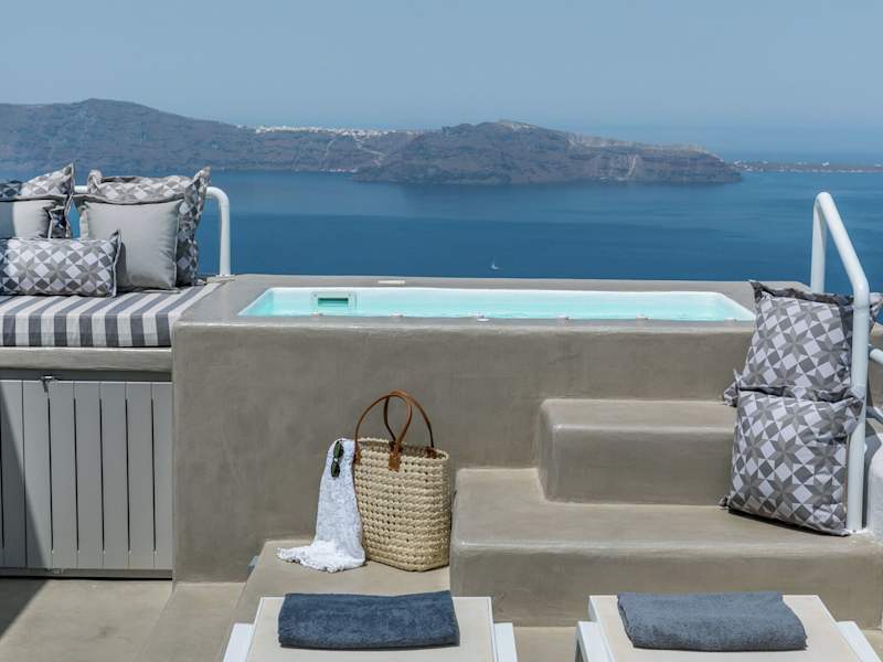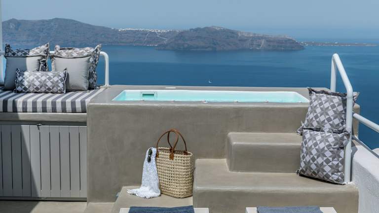 Das 360° Caldera View House by Caldera Houses bietet einen Whirlpool, in dem Sie entspannen und den atemberaubenden Meerblick genießen können.
