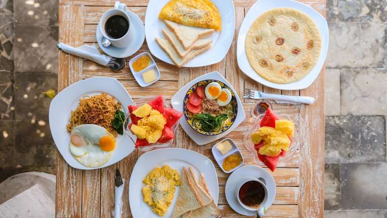Das tägliche Frühstück im The 5 Brothers Hotel umfasst eine Vielzahl von Optionen, darunter kontinentale, asiatische und vegetarische Speisen. Starten Sie Ihren Tag mit einem köstlichen Mahl und seien Sie bereit für all die Abenteuer, die Sie auf Gili Trawangan erwarten.