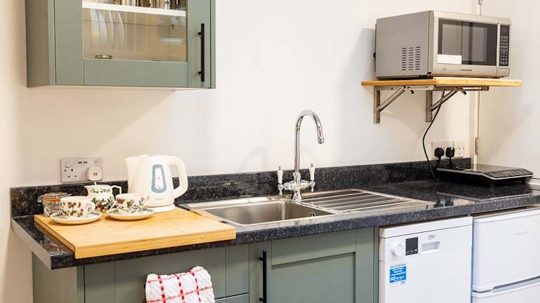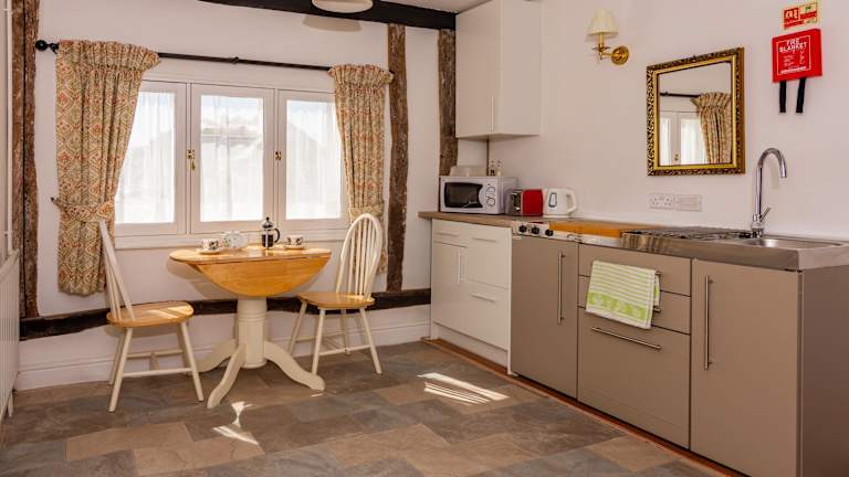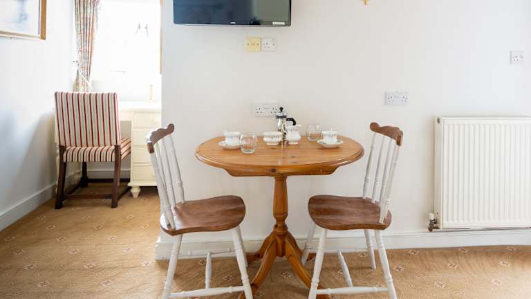Ein englisches Frühstück mit regionalem geräuchertem Speck und Würstchen wird auf Bestellung zubereitet. Zudem steht ein leichtes Buffet zur Verfügung. Es sind Speisen für spezielle Ernährungsbedürfnisse auf Anfrage möglich.
