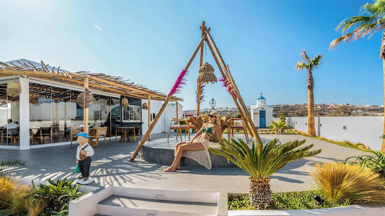 In der Unterkunft wird ein kontinentales Frühstück angeboten. Ein Restaurant serviert griechische, mediterrane und seafood-basierte Küche. Darüber hinaus sind eine Snackbar sowie die Möglichkeit für spezielle Ernährungsbedürfnisse auf Anfrage vorhanden.