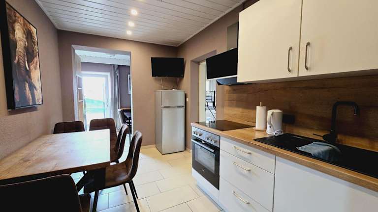 In einigen Wohneinheiten steht eine Küche zur Verfügung, die unter anderem mit einem Kühlschrank, Geschirrspüler und Ofen ausgestattet ist.