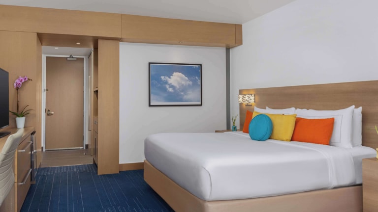 Die 165 Zimmer des Hotels sind modern und komfortabel eingerichtet. Jedes Zimmer verfügt über eine Klimaanlage, einen Flachbild-TV und kostenfreies WLAN. Einige Zimmer verfügen über einen eigenen Balkon und einen separaten Sitzbereich, in dem Sie nach einem ereignisreichen Tag entspannen können. Zur weiteren Ausstattung gehören eine Minibar, eine Kaffeemaschine und ein eigenes Badezimmer mit Bademänteln und kostenfreien Pflegeprodukten.