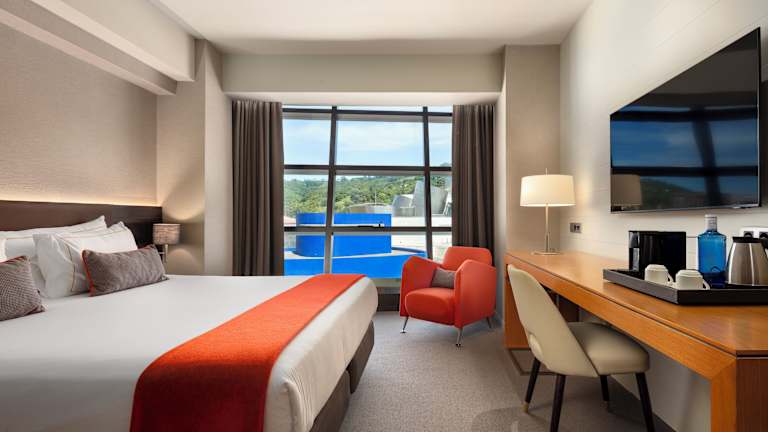 Die klimatisierten Zimmer sind mit Teppichboden und einem eigenen Bad mit Badewanne, Haartrockner sowie Bademänteln ausgestattet. Jedes Zimmer verfügt über kostenfreies WLAN, einen USB-Anschluss, einen 40-Zoll-Flachbild-TV mit internationalen Sat-Kanälen und eine Minibar. Ein Schreibtisch, ein Safe sowie eine Tee- und Kaffeezubereitungsmöglichkeit sind ebenfalls vorhanden. Einige Zimmer bieten einen Balkon oder eine Terrasse.