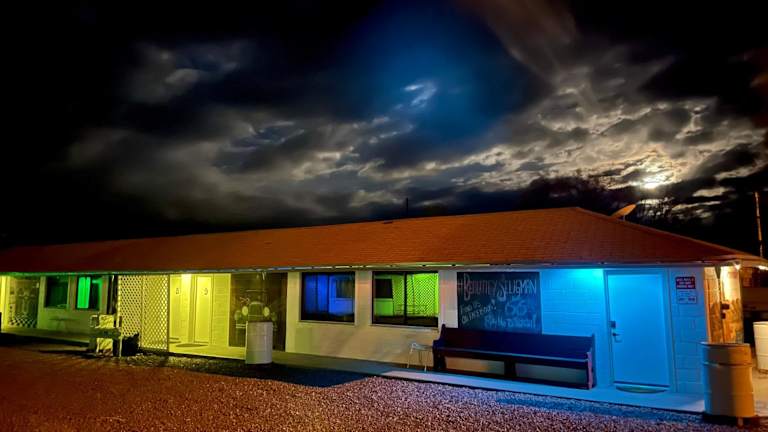 Das Aztec Motel & Creative Space in Seligman bietet seinen Gästen komfortable und klimatisierte Zimmer sowie kostenfreies WLAN und Parkplätze. Die Zimmer sind mit modernen Annehmlichkeiten ausgestattet und sorgen für einen angenehmen Aufenthalt. Die Lage des Motels ermöglicht eine gute Anbindung an den Flughafen, der etwa 110 km entfernt liegt.