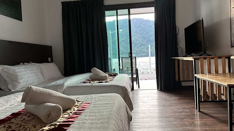 Das The Barat Perhentian Beach Resort auf Pulau Perhentian Besar bietet seinen Gästen einen unvergesslichen Strandurlaub. Das Hotel liegt direkt am Strand und bietet eine entspannte Atmosphäre sowie eine Vielzahl von Annehmlichkeiten. Genießen Sie den schönen Ausblick von der Terrasse, nutzen Sie das kostenlose WLAN und lassen Sie sich bei der Tourenplanung unterstützen. Das Restaurant The Barat verwöhnt Sie mit köstlicher Küche und in der Snackbar können Sie Ihren Durst stillen. Das Resort verfügt zudem über einen Pool und bietet einen Flughafentransfer gegen Gebühr an. Die 71 klimatisierten Zimmer sind gemütlich eingerichtet und werden täglich gereinigt.