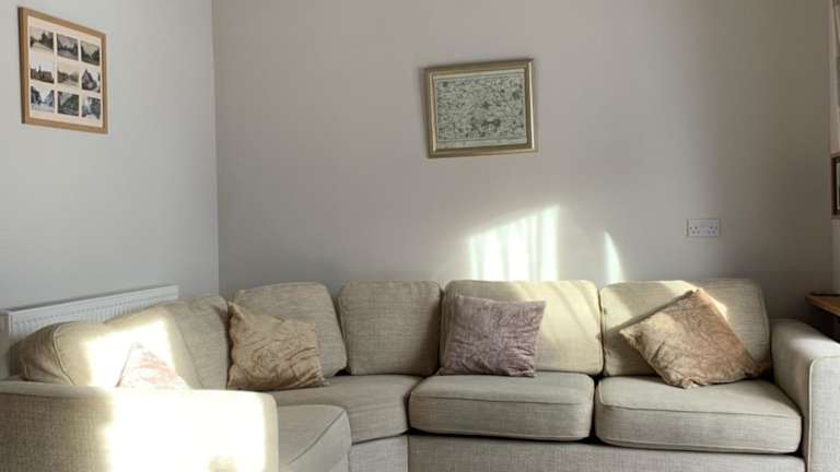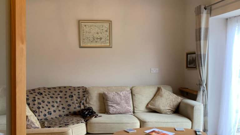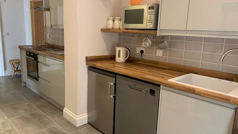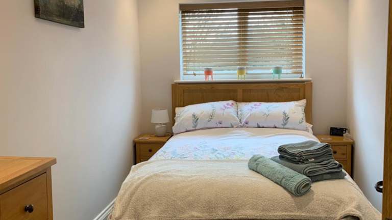 Die Ferienwohnung umfasst ein Wohnzimmer mit Sitz- und Essbereich, ein Schlafzimmer und ein Badezimmer, das sowohl mit einer Dusche als auch mit einer Badewanne ausgestattet ist. Die Küche ist mit einem Kühlschrank, Geschirrspüler und einem Ofen ausgestattet. Des Weiteren stehen Handtücher und Bettwäsche zur Verfügung.