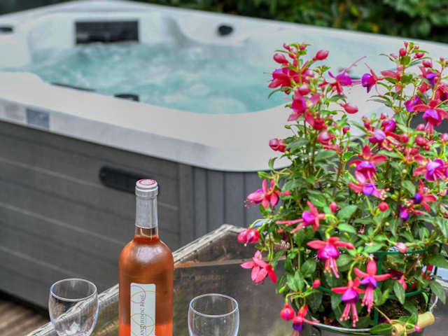 Die Ferienwohnung bietet ein Schlafzimmer, ein Wohnzimmer sowie eine voll ausgestattete Küche mit Kühlschrank und Kaffeemaschine. Zur Ausstattung gehört ein Badezimmer mit Dusche und Whirlpool. Handtücher und Bettwäsche werden bereitgestellt.