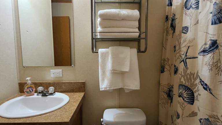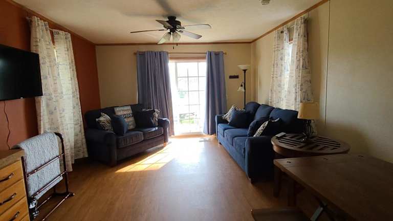Das Ferienhaus verfügt über 1 Schlafzimmer, eine Küche mit Kühlschrank und Geschirrspüler, einen Sitzbereich und ein Badezimmer mit Dusche. Handtücher und Bettwäsche werden bereitgestellt.