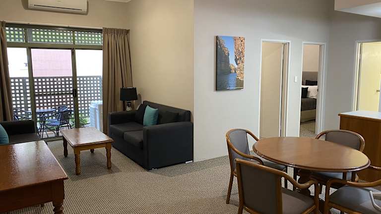 In der Umgebung des Hotels sind verschiedene Essensmöglichkeiten, Geschäfte und Bars vorhanden, die in einem 10-minütigen Spaziergang entlang des Wollongong Hafens erreicht werden können. Essenslieferungen in die Unterkunft sind ebenfalls möglich.