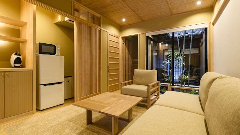 Die Zimmer im The Besso Soso Kyoto sind modern und komfortabel eingerichtet. Jedes Zimmer verfügt über ein gemütliches Wohnzimmer und ein Badezimmer mit kostenfreien Pflegeprodukten. Die Küchenzeile ist mit einer Mikrowelle, einem Kühlschrank und einer Kaffeemaschine ausgestattet, um Ihnen einen angenehmen Aufenthalt zu ermöglichen. Genießen Sie den Blick auf den Garten und entspannen Sie sich in Ihrem eigenen kleinen Rückzugsort.