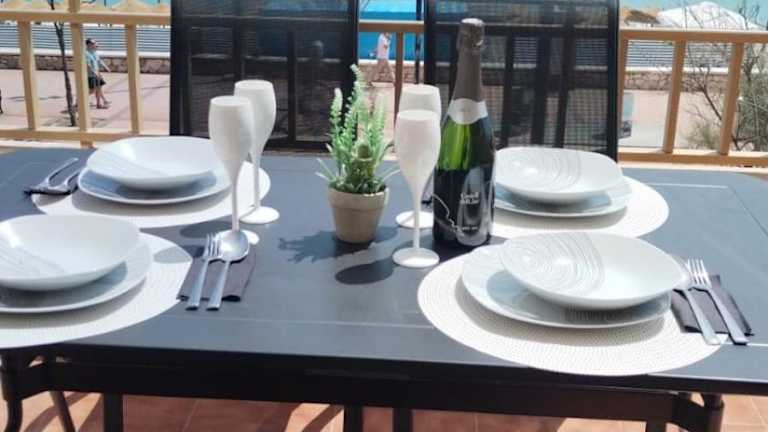 Die Ferienwohnung umfasst 3 Schlafzimmer und 2 Badezimmer. Zur Ausstattung gehören Bettwäsche, Handtücher, ein Flachbild-TV mit Kabelkanälen, ein Essbereich sowie eine voll ausgestattete Küche. Eine Terrasse mit Meerblick rundet das Angebot ab.
