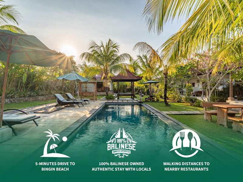 Das The Bingin Green View by Bukit Vista in Uluwatu bietet eine idyllische Unterkunft mit Poolblick, einem Restaurant und einem ganzjährig geöffneten Außenpool. Genießen Sie den Komfort des kostenfreien WLANs und des Privatparkplatzes. Die klimatisierten Zimmer sind geräumig und bieten einen gemütlichen Sitz- und Essbereich. Entdecken Sie die beliebten Strände Cemongkak, Bingin und Dreamland in der Nähe. Der Flughafen Denpasar ist nur 17 km entfernt und ein Flughafentransferservice steht Ihnen gegen Aufpreis zur Verfügung.