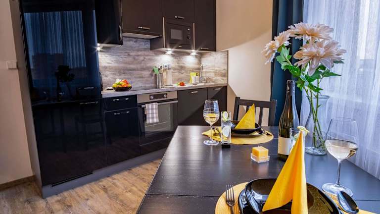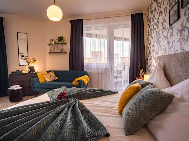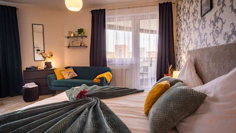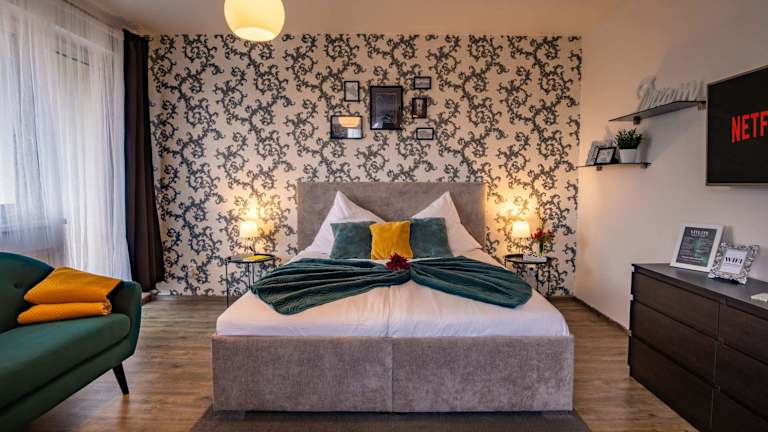 Die Ferienwohnung verfügt über ein Schlafzimmer und bietet Stadtblick. Zur Ausstattung gehören Kabel-TV, eine gut ausgestattete Küche mit Kühlschrank, Geschirrspüler und Mikrowelle sowie ein Badezimmer mit kostenlosen Pflegeprodukten.