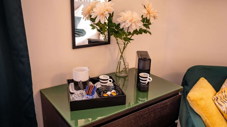 The Black & Green Retreat bietet eine Ferienwohnung mit einem direkten Zugang zu einer Veranda/Patiovon, die für einen entspannten Aufenthalt sorgt. Die Unterkunft ermöglicht den Gästen eine angenehme Zeit mit kostenlosem WLAN im gesamten Bereich.