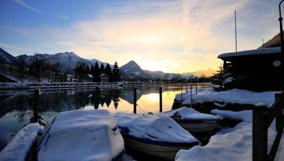 Das Boat House befindet sich in Goldswil und liegt direkt am malerischen Fluss Aare. Die Umgebung bietet eine idyllische Landschaft mit grünen Wiesen und Bergen im Hintergrund. Die Lage ist ruhig und abgeschieden, ideal für einen erholsamen Urlaub. Der Bahnhof Interlaken Ost ist zu Fuß in etwa 25 Minuten erreichbar, von wo aus Sie bequem die Region erkunden können. Bitte beachten Sie, dass die letzten 200 Meter zum Haus über einen Schotterweg führen. Öffentliche Parkplätze stehen in 200 Metern Entfernung zur Verfügung und kosten CHF 5 pro Tag.
