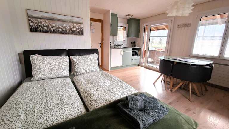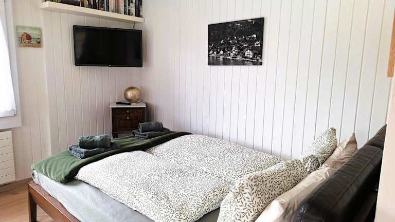 Das Boat House in Goldswil ist ein einzigartiges Studio-Haus, das direkt am Fluss Aare liegt und ein erholsames und komfortables Erlebnis bietet. Mit einem eigenen Balkon, einer kleinen Küche, einem modernen Bad und Annehmlichkeiten wie Smart-TV, WLAN und Waschmaschine/Trockner, ist das Haus perfekt ausgestattet. Die Lage ist ideal, da der Bahnhof Interlaken Ost in nur 25 Minuten zu Fuß erreichbar ist. Die letzten 200 Meter zum Haus führen über einen Schotterweg. Öffentliche Parkplätze sind in 200 Metern Entfernung verfügbar (CHF 5 pro Tag). Während Ihres Aufenthalts können Sie auch kostenlos zwei Fahrräder nutzen.