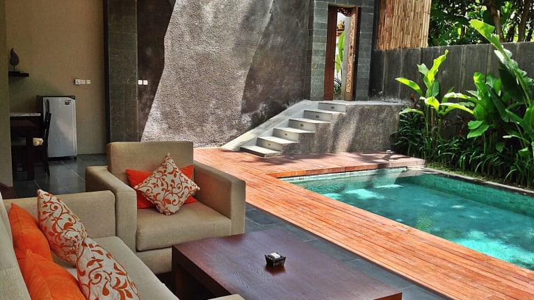 Die Villen im The Canggu Boutique Villas & Spa by ecommerceloka bieten einen eigenen Pool, Klimaanlage, eine Terrasse und eine Minibar. Die Badezimmer sind mit einer Dusche und kostenlosen Pflegeprodukten ausgestattet. Genießen Sie den Blick auf den Pool von Ihrem Zimmer aus. Weitere Annehmlichkeiten umfassen einen Schreibtisch und einen Safe.
