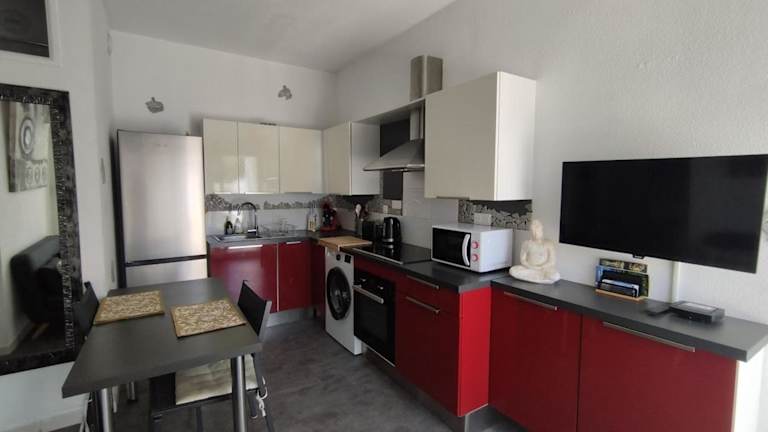 Die Ferienwohnung verfügt über ein Schlafzimmer, eine Küche mit Kühlschrank und Ofen, ein Badezimmer mit Badewanne oder Dusche sowie Annehmlichkeiten wie Haartrockner und Waschmaschine. Ein TV ist ebenfalls vorhanden.