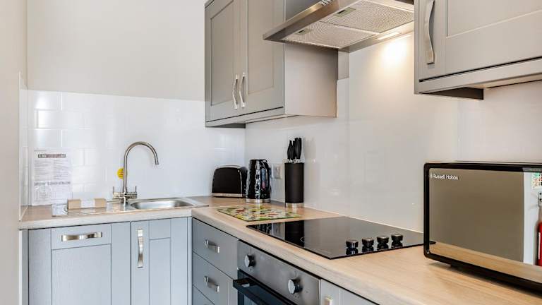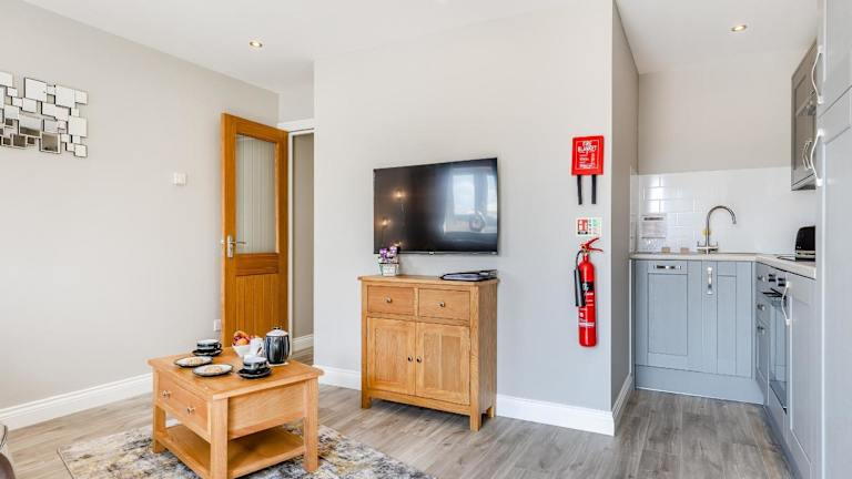 Das Ferienhaus verfügt über ein Schlafzimmer und eine Küche, die mit einem Geschirrspüler ausgestattet ist. Es sind Handtücher und Bettwäsche vorhanden. Die Unterkunft bietet zudem kostenfreies WLAN und einen Fernseher.